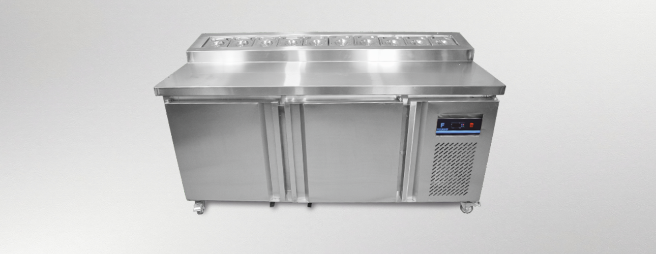| FC-MAC-60 | 5 Feet Pizzeria / MadiFC with 1/6 x 100mm-8 Nos GN | 350 Ltr | 1500 x 750 x 1000 | 0 to -5 Degree |